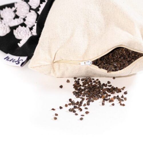 Disse højkvalitets Shakti Nail Mats er lavet i hånden i Indien. I stedet for de billige “pigge” man ofte ser, indeholder denne måtte højkvalitets lotusspidser. De er fyldt med 100% naturligt og holdbart fyld (boghvedeskaller). Puderne måler 44x22cm og kan åbnes og lukkes med en nem lynlås på siden. Lynlåsen er pænt skjult, så du ikke bemærker den under meditation. Puden kan let gøres hårdere eller blødere ved at tage noget af fyldet ud eller tilføje mere.