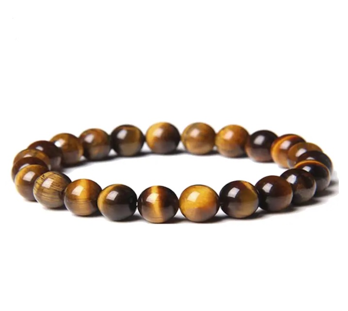 Armbåndet er lavet med 8 mm tigerøje sten og en justerbar snor, der sikrer en behagelig pasform for alle håndledsstørrelser. Det er velegnet til både mænd og kvinder, og de gyldne sten giver et klassisk og elegant look, der passer til enhver stil.