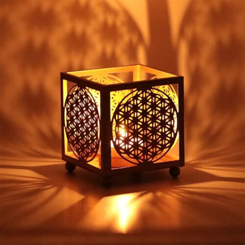 Fair Trade atmosfærisk belysning i en lys guldfarve, velegnet til afbrænding af fyrfadslys og votivlys. For optimal sikkerhed, brænd stearinlyset i et votivglas.