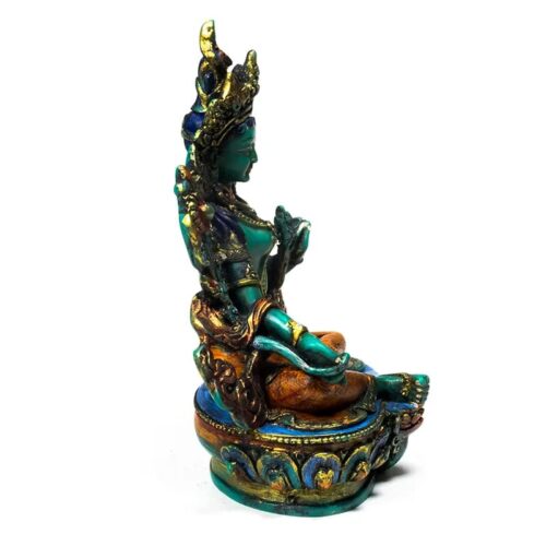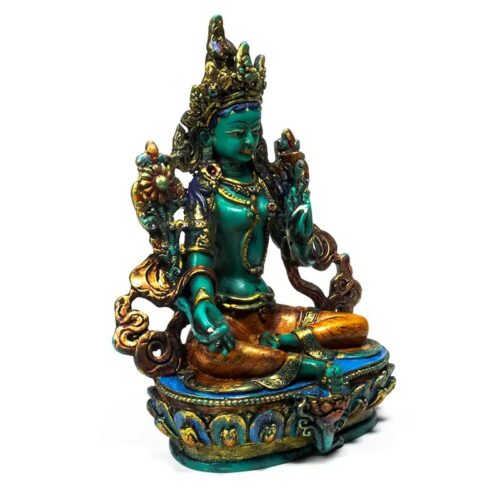 Grøn Tara Figur – 15 cm, smukt farverig og håndmalet