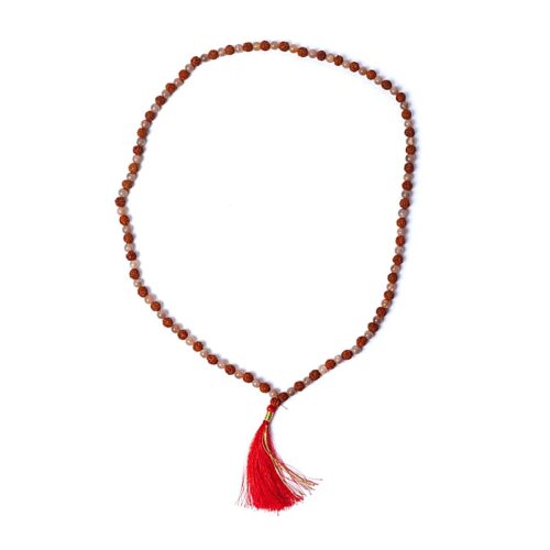 Mala som et Spirituelt Værktøj: Malaen har oprindelse som et hinduistisk og buddhistisk redskab til bøn og meditation. Den bruges til at tælle gentagelser af mantraer, ofte fra sanskrit, under meditation. Traditionelt gentages mantras 108 gange, og mens du gentager, fokuserer du på ordene, deres betydning og vibration. Dette træner sindet til at finde ro, mens kroppen slapper af. I dag bæres malaer også som en modeaccessory.