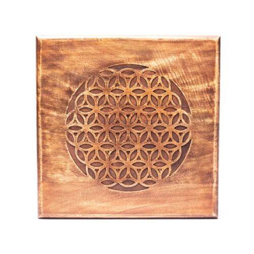 Sidebord lavet af mangotræ med højkvalitets detaljeret udskæring af Livets Blomst symbol. Afsluttet med vokslak. Sæt nemt sammen med skruebenene. Livets Blomst er et symbol fra hellig geometri og symboliserer enhed af alt i livets skabelse.